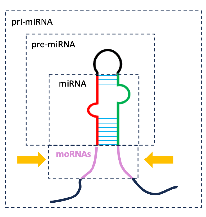 - moRNA levels do not correlate with their cognate miRNA – some moRNAs are more abundant than the adjacent miRNAs [1, 2];