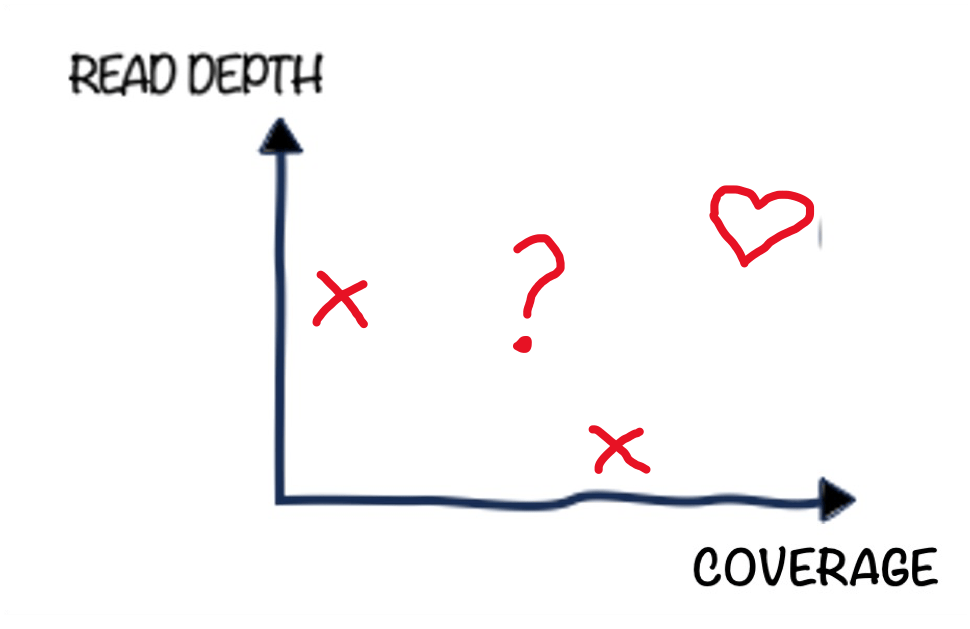 When you describe your experiment in terms of coverage and read depth, you are essentially drawing a 2D plane and slapping your dataset(s) onto it.